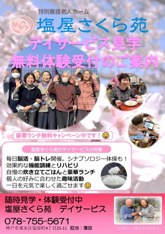 この機会に是非、塩屋さくら苑のデイサービスをご体験くださいませ。